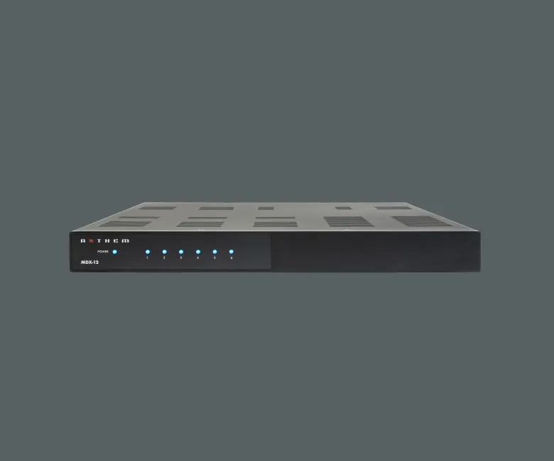 Ο Anthem MDX-12 είναι ένα ισχυρό και απλό σύστημα διανομής ήχου πολλαπλών ζωνών, σχεδιασμένο για να προσφέρει κορυφαία απόδοση σε οικιακά hi-fi και home theater συστήματα. Αναπτυγμένο από την Anthem, μια εταιρεία με μακρά παράδοση στην καινοτομία ήχου, το MDX-12 διαθέτει 12 κανάλια ενίσχυσης Ultra-Class-D, αποδίδοντας 75W ανά κανάλι στα 8 ohms ή 150W στα 4 ohms, με δυνατότητα bridge mode για 280W στα 8 ohms. Χωρίς την ενσωματωμένη μήτρα μεταγωγής των προηγμένων μοντέλων MDX-8 και MDX-16, το MDX-12 εστιάζει στην απλότητα, προσφέροντας 6 dedicated αναλογικές εισόδους ανά ζώνη και 2 global αναλογικές εισόδους, καθιστώντας το ιδανικό για εύκολες και αξιόπιστες εγκαταστάσεις διανομής ήχου.