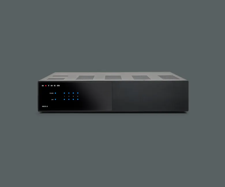 O Anthem MDX-8 απευθύνεται σε όσους χρειάζονται ευελιξία και ισχύ σε συστήματα πολλαπλών ζωνών. Είτε πρόκειται για οικιακό home theater είτε για επαγγελματική εγκατάσταση, προσφέρει καθαρό ήχο, δυναμική απόκριση και απόλυτο έλεγχο. Η ενσωματωμένη διόρθωση ARC Genesis εξασφαλίζει βέλτιστη ακουστική σε κάθε χώρο, ενώ η δυνατότητα bridge mode και οι έξοδοι subwoofer επιτρέπουν προσαρμοσμένες λύσεις. Με εύκολη διαμόρφωση μέσω web-based ελέγχου, το MDX-8 απλοποιεί την εγκατάσταση και εντυπωσιάζει με την απόδοσή του.