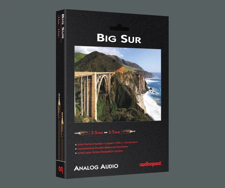 Το AudioQuest Big Sur είναι ένα καλώδιο διασύνδεσης που ενσωματώνει ανώτερα υλικά και εξελιγμένες τεχνολογίες για να προσφέρει μια αξιοσημείωτη βελτίωση στην ηχητική απόδοση, ειδικά όταν συνδέετε ποιοτικές φορητές πηγές: