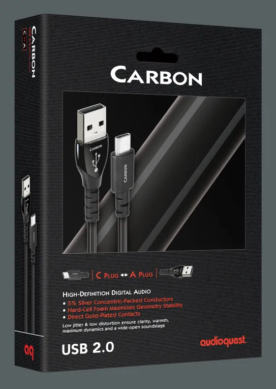 Το AudioQuest Carbon USB, συμπεριλαμβανομένης της έκδοσης C to A, είναι ένα από τα πιο αναγνωρισμένα και πολυβραβευμένα καλώδια USB στην αγορά: