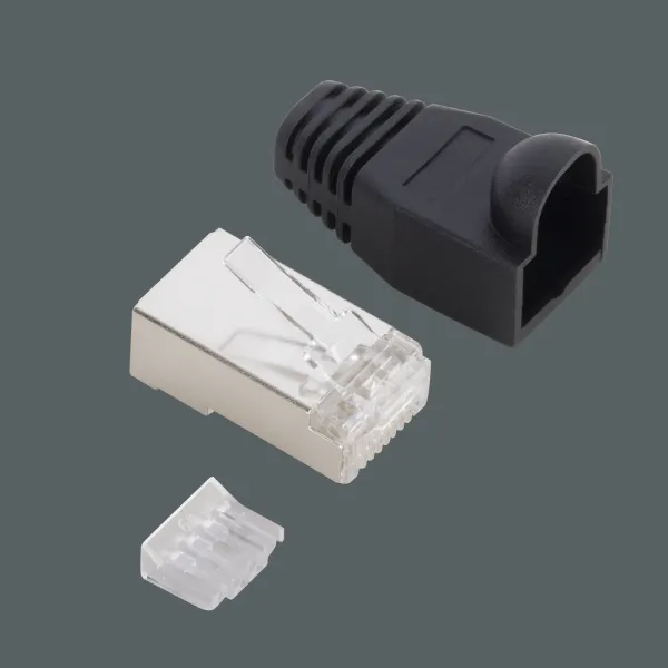Ένας σωστός τερματισμός είναι κρίσιμος, ειδικά στα καλώδια δικτύου όπου η γεωμετρία των συνεστραμμένων ζευγών πρέπει να διατηρηθεί μέχρι το τελευταίο χιλιοστό. Οι ακροδέκτες CAT-600 DCP διαθέτουν ένα εξαιρετικό σύστημα δύο σημείων για την ανακούφιση της μηχανικής τάσης (strain relief). Το πρώτο σημείο ασφαλίζει τον εξωτερικό μανδύα του καλωδίου. Το δεύτερο, και πιο σημαντικό, ασφαλίζει το κάλυμμα του ακροδέκτη (boot), προστατεύοντας τα ευαίσθητα ζεύγη των αγωγών ακριβώς στο σημείο της σύνδεσης. Επιπλέον, περιλαμβάνουν έναν οδηγό (wire guide) που διατηρεί τους 8 αγωγούς στη σωστή σειρά και τους ευθυγραμμίζει τέλεια, κάνοντας τη διαδικασία του τερματισμού γρήγορη, εύκολη και απόλυτα αξιόπιστη.