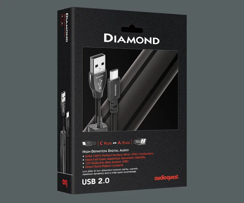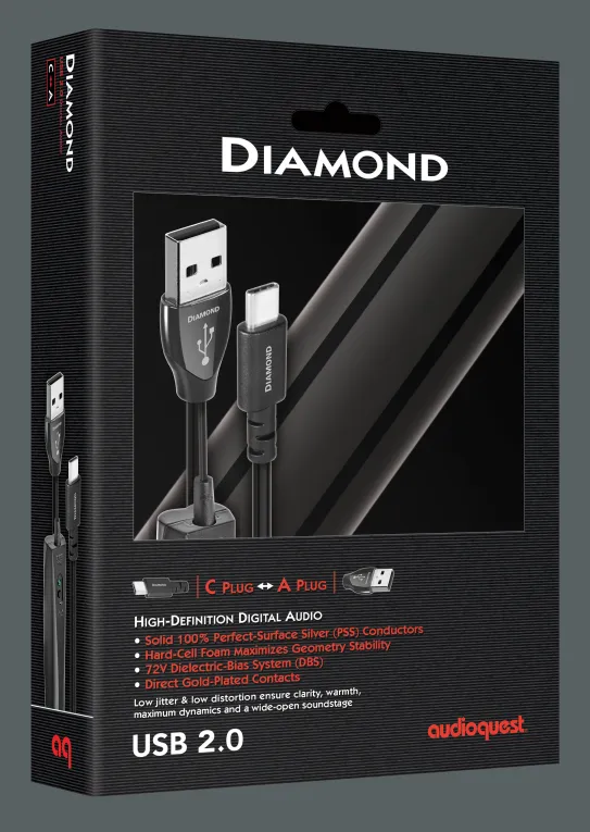Το AudioQuest Diamond USB (σε όλες τις διαμορφώσεις του) αναγνωρίζεται παγκοσμίως ως το απόλυτο σημείο αναφοράς, το "Holy Grail" των καλωδίων USB:
