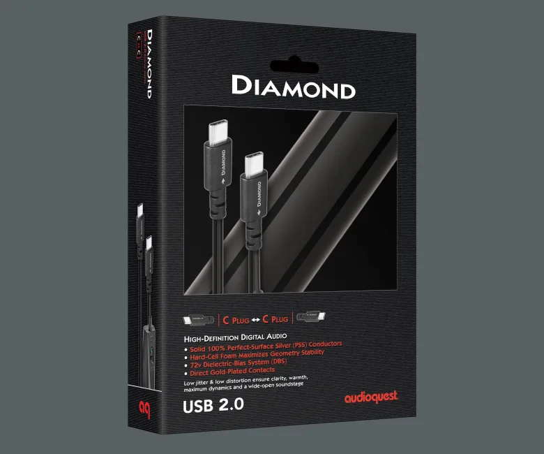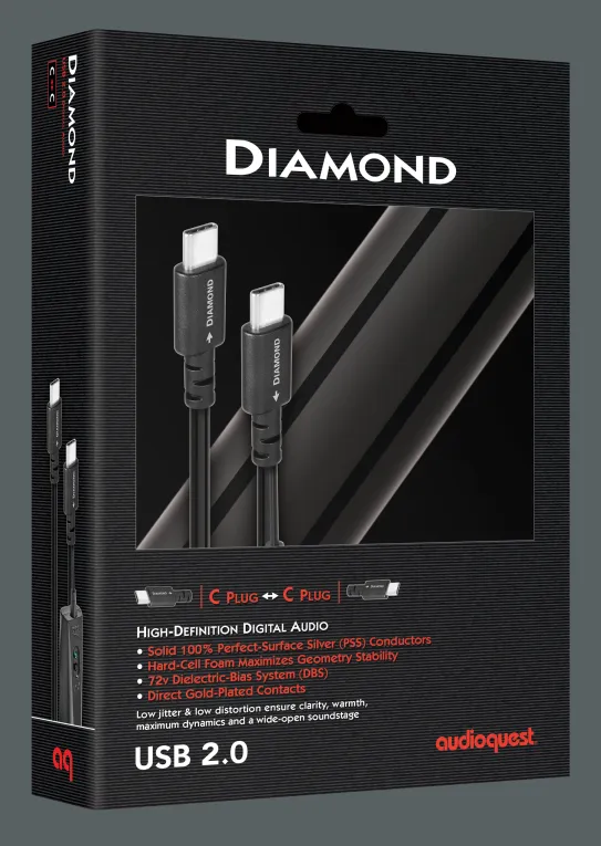 Το AudioQuest Diamond USB (σε όλες τις διαμορφώσεις του, συμπεριλαμβανομένης της C to C) αναγνωρίζεται παγκοσμίως ως το απόλυτο σημείο αναφοράς, το "Holy Grail" των καλωδίων USB: