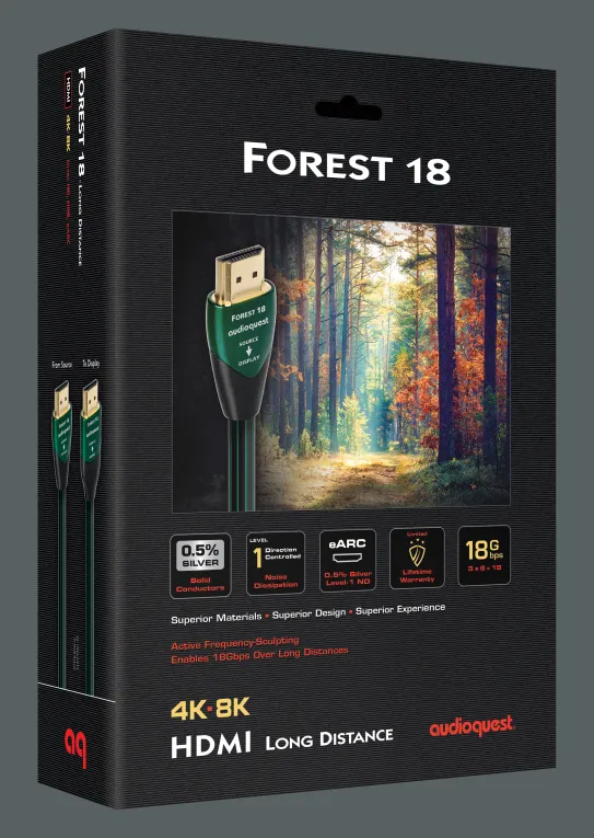 Το AudioQuest Forest 18 HDMI Cable προσφέρει μια εξαιρετική οπτικοακουστική εμπειρία και υπερέχει για τους εξής λόγους: