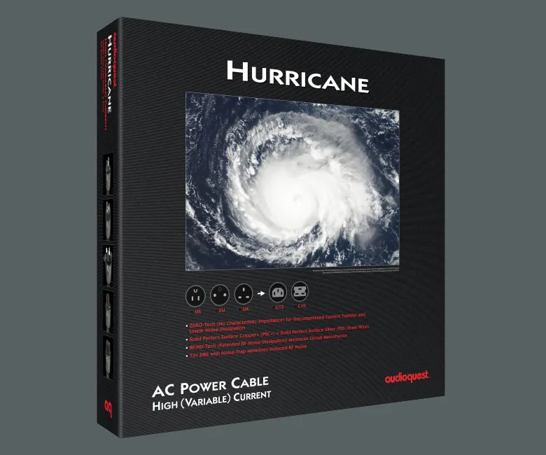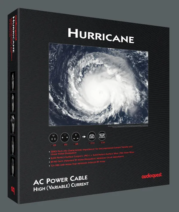 Το AudioQuest Hurricane High-Variable Current προορίζεται αποκλειστικά και μόνο για τα απολύτως κορυφαία, "state-of-the-art", "cost-no-object" συστήματα αναφοράς παγκοσμίως, όπου κάθε άλλο εξάρτημα είναι αντίστοιχου, εξωπραγματικού επιπέδου, και ειδικά για συσκευές ακραίου υψηλού ρεύματος όπως τεράστιοι μονομπλόκ τελικοί ενισχυτές.