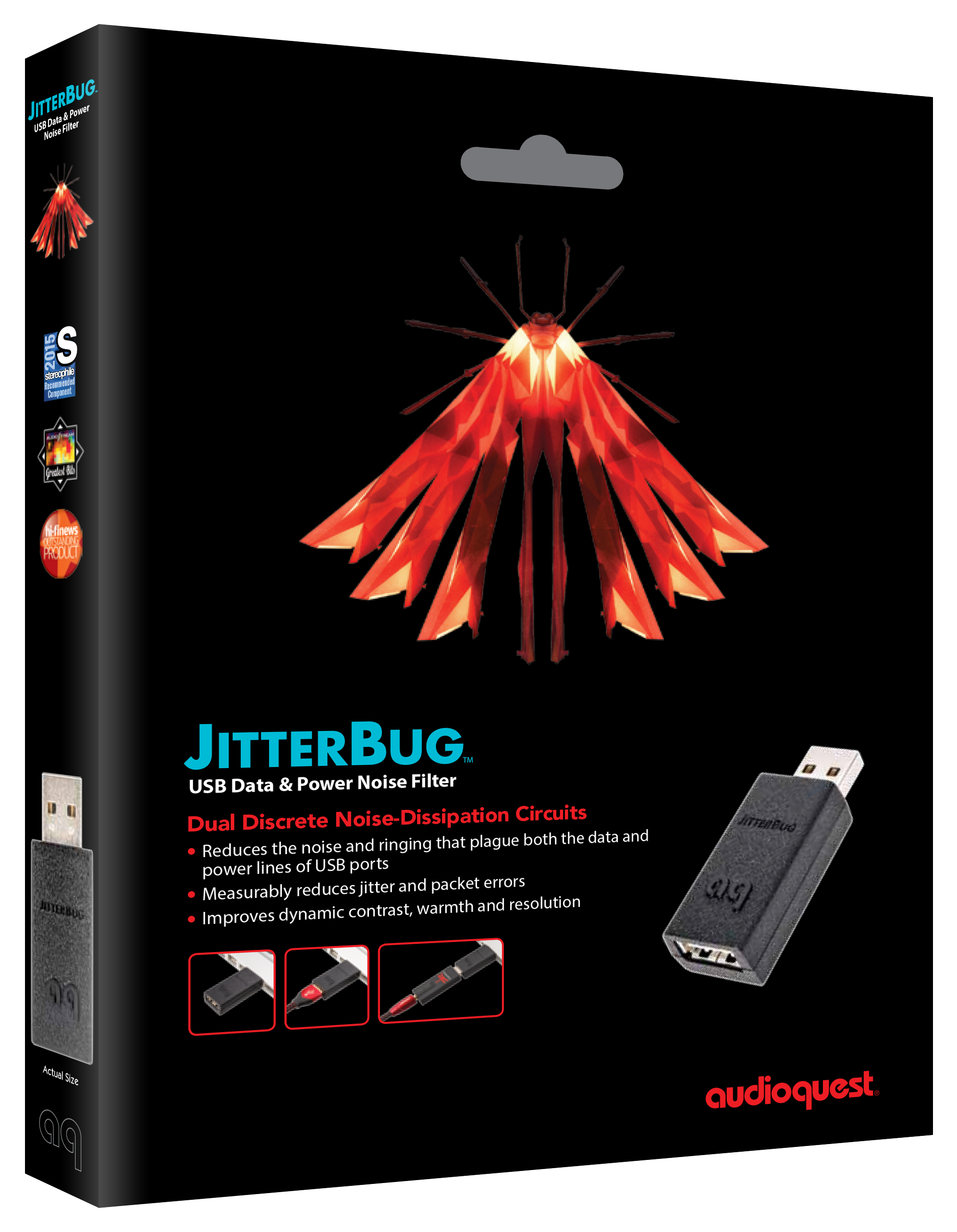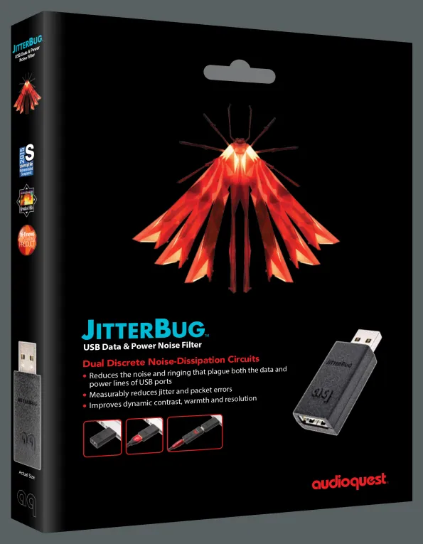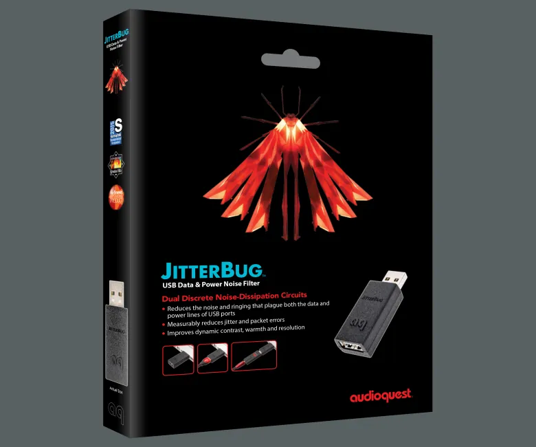To AudioQuest JitterBug FMJ (Full Metal Jacket) είναι ένα φίλτρο θορύβου USB δεύτερης γενιάς, σχεδιασμένο για να μειώνει τις παρεμβολές και τον θόρυβο που επηρεάζουν την ποιότητα ήχου σε ψηφιακά συστήματα hi-fi και home theater. Αναβαθμισμένη έκδοση του αρχικού JitterBug, το FMJ ενσωματώνει προηγμένες τεχνολογίες για τη μείωση του ραδιοσυχνικού (RF) θορύβου και των παρασιτικών συντονισμών που παράγονται από υπολογιστές, smartphones, streamers ή άλλες συσκευές με θύρες USB. Με στιβαρό μεταλλικό περίβλημα και 12 πρίζες υψηλής απόδοσης, το JitterBug FMJ προσφέρει καθαρότερο σήμα USB, βελτιώνοντας τη δυναμική, τη διαφάνεια και τη λεπτομέρεια του ήχου, ενώ παράλληλα προστατεύει τον εξοπλισμό σας.