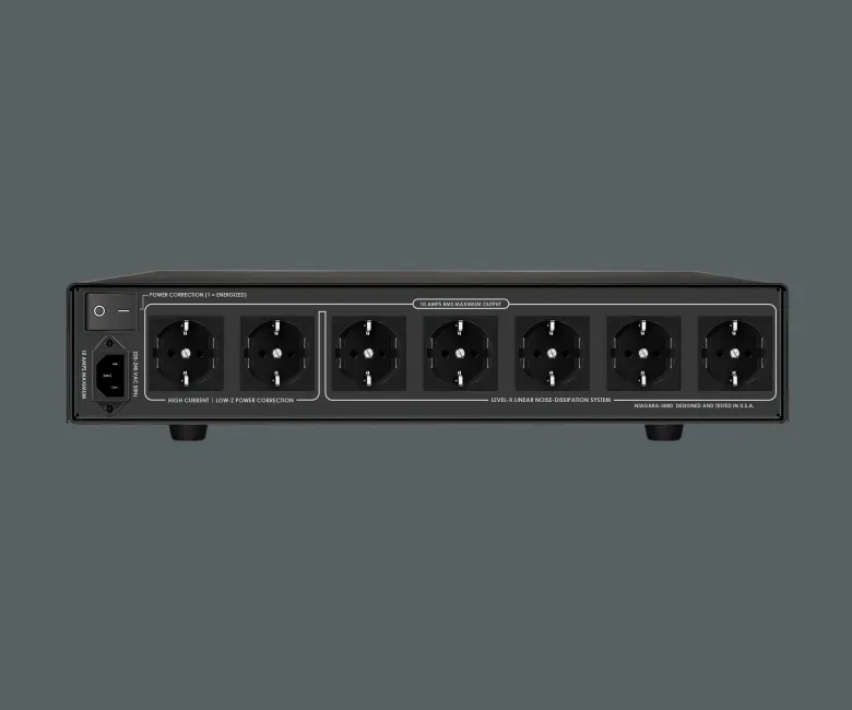 To AudioQuest Niagara 3000 είναι ένα υψηλής απόδοσης σύστημα διαχείρισης ισχύος χαμηλής αντίστασης (Low-Z Power Noise-Dissipation System), σχεδιασμένο για να προσφέρει καθαρή, σταθερή και απεριόριστη τροφοδοσία σε hi-fi και home theater συστήματα. Κατασκευασμένο στον Καναδά με έμφαση στη λεπτομέρεια, το Niagara 3000 ενσωματώνει προηγμένες τεχνολογίες από τα μεγαλύτερα μοντέλα της σειράς (Niagara 5000 και 7000), όπως το πατενταρισμένο Ground-Noise Dissipation System, το Transient Power Correction και το εξαιρετικά ευρύ φιλτράρισμα Level-X, σε ένα πιο συμπαγές και προσιτό πακέτο. Με επτά πρίζες και rack-friendly διαστάσεις (περιλαμβάνονται 2-RU rack ears), είναι ιδανικό τόσο για στερεοφωνικές εγκαταστάσεις δύο καναλιών όσο και για custom εγκαταστάσεις.