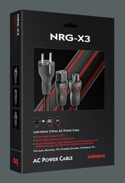 Το AudioQuest NRG-X3 είναι ένα προσεκτικά σχεδιασμένο καλώδιο τροφοδοσίας που ενσωματώνει βασικές αρχές της AudioQuest για να παρέχει καθαρότερη ενέργεια στις ηλεκτρονικές σας συσκευές: