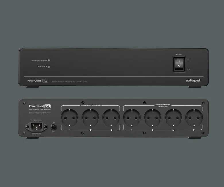 Το AudioQuest PowerQuest 303 είναι ένα υψηλής απόδοσης φίλτρο ρεύματος και προστατευτικό υπέρτασης, σχεδιασμένο για να παρέχει καθαρή και σταθερή τροφοδοσία σε hi-fi και home theater συστήματα. Αναπτυγμένο από τον Garth Powell, τον ειδικό της AudioQuest στον τομέα της τροφοδοσίας, το PowerQuest 303 συνδυάζει προηγμένες τεχνολογίες από τη σειρά Niagara με έναν πιο προσιτό και πρακτικό σχεδιασμό. Με 12 πρίζες υψηλής απόδοσης – τέσσερις high-current για ενισχυτές και οκτώ linear-filtered για πηγές ήχου – το PowerQuest 303 προσφέρει εξαιρετική μείωση θορύβου, προστασία εξοπλισμού και ευελιξία εγκατάστασης, καθιστώντας το ιδανικό για audiophiles και λάτρεις της οικιακής ψυχαγωγίας.