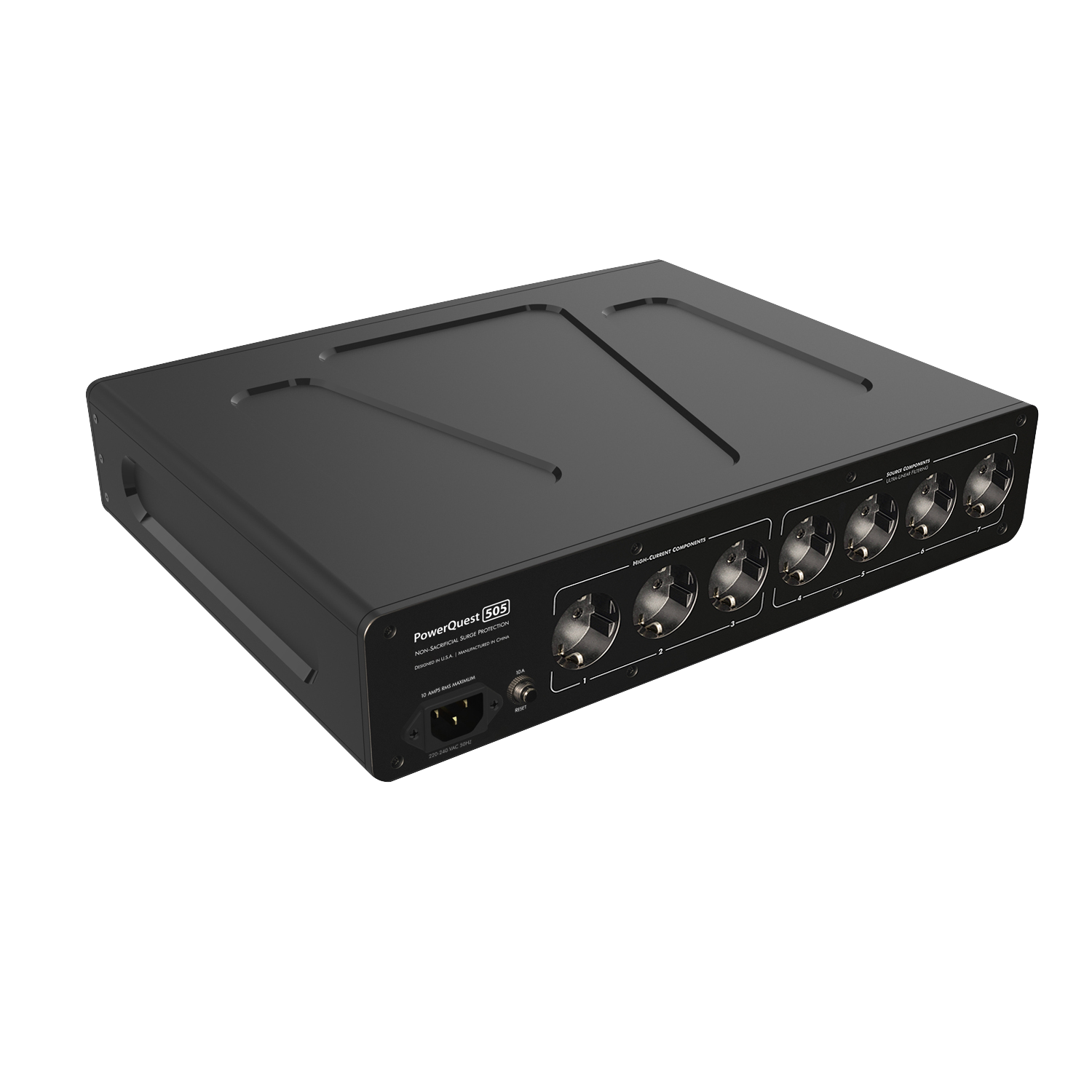 Το AudioQuest PowerQuest 505 είναι ένα υψηλής απόδοσης φίλτρο ρεύματος και προστατευτικό υπέρτασης, σχεδιασμένο για να προσφέρει καθαρή και σταθερή τροφοδοσία σε hi-fi και home theater συστήματα. Αναπτυγμένο από τον Garth Powell, τον ειδικό της AudioQuest στον τομέα της τροφοδοσίας, το PowerQuest 505 φέρνει τεχνολογίες από την premium σειρά Niagara σε μια πιο προσιτή κατηγορία, με έμφαση στην ευελιξία και την ποιότητα. Με 12 πρίζες υψηλής απόδοσης – τέσσερις high-current για ενισχυτές και οκτώ ultra-linear filtered για πηγές ήχου – το PowerQuest 505 συνδυάζει προηγμένη μείωση θορύβου, στιβαρή προστασία και rack-mountable σχεδιασμό, καθιστώντας το ιδανικό για στερεοφωνικά συστήματα, πολυκαναλικά home theater και custom εγκαταστάσεις.