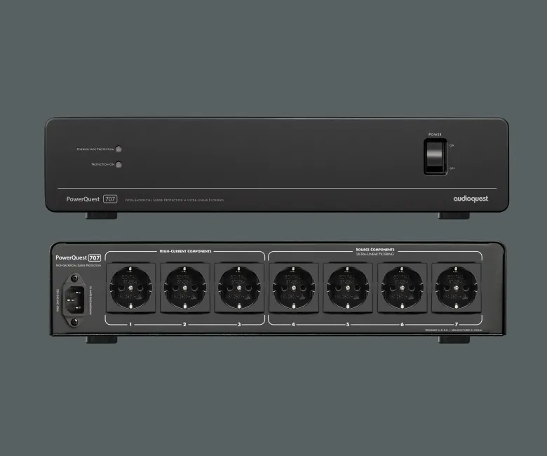 To AudioQuest PowerQuest 707 είναι το κορυφαίο φίλτρο ρεύματος και προστατευτικό υπέρτασης της σειράς PowerQuest, σχεδιασμένο για να προσφέρει εξαιρετικά καθαρή και σταθερή τροφοδοσία σε hi-fi και home theater συστήματα. Αναπτυγμένο από τον Garth Powell, τον ειδικό της AudioQuest στον τομέα της τροφοδοσίας, το PowerQuest 707 συνδυάζει προηγμένες τεχνολογίες από τη σειρά Niagara, όπως το Transient Power Correction και το Ultra-Linear Noise-Dissipation, σε έναν στιβαρό και rack-mountable σχεδιασμό. Με 12 πρίζες υψηλής απόδοσης – τέσσερις high-current για ενισχυτές και οκτώ ultra-linear filtered για πηγές ήχου – το PowerQuest 707 εξασφαλίζει κορυφαία μείωση θορύβου, προστασία εξοπλισμού και δυναμική απόδοση, ιδανικό για στερεοφωνικά συστήματα, πολυκαναλικά home theater και custom εγκαταστάσεις.