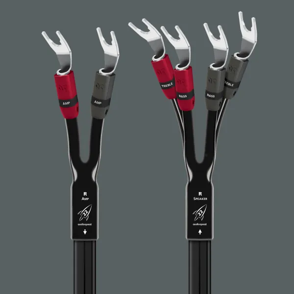 Αυτή είναι η ουσία του σχεδιασμού του. Το καλώδιο είναι κατασκευασμένο ως ένα ενιαίο, κομψό σύνολο. Στην πλευρά του ενισχυτή, καταλήγει σε δύο ακροδέκτες (+/-). Στην πλευρά του ηχείου όμως, διαχωρίζεται σε τέσσερις ακροδέκτες: δύο για τους ακροδέκτες των υψηλών συχνοτήτων (HF) και δύο για τους ακροδέκτες των χαμηλών συχνοτήτων (LF). Αυτό μειώνει τις παραμορφώσεις και βελτιώνει δραματικά την καθαρότητα και τον διαχωρισμό, καθώς οι μεγάλες ποσότητες ρεύματος των χαμηλών συχνοτήτων δεν "μολύνουν" το ευαίσθητο σήμα των υψηλών.