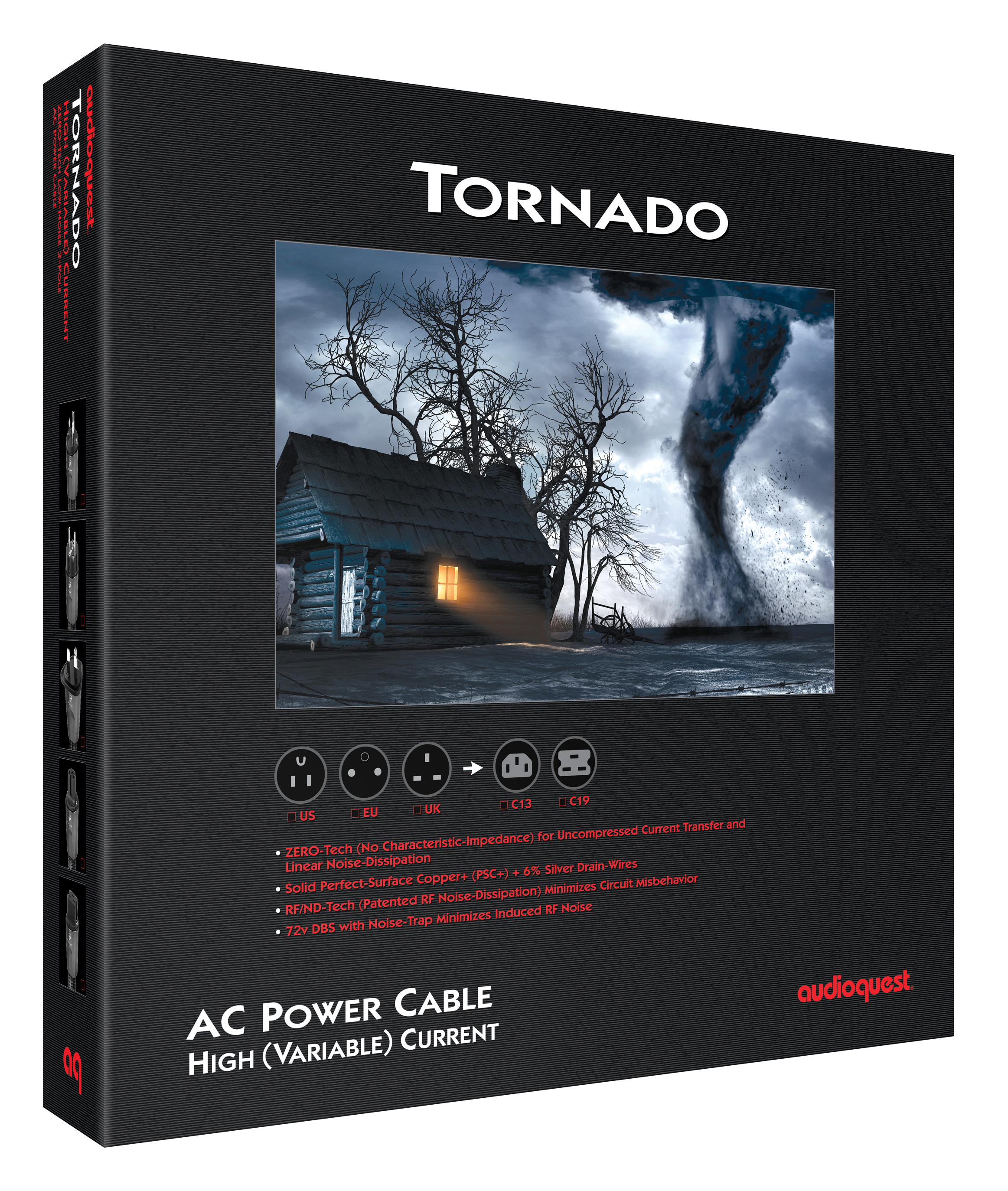 Το AudioQuest Tornado High-Variable Current είναι ένα καλώδιο τροφοδοσίας υψίστων, σχεδόν ακραίων επιδόσεων, κατασκευασμένο για να τροφοδοτεί τις πιο "πεινασμένες" για ενέργεια συσκευές, ενσωματώνοντας τις πιο εξελιγμένες και αποκλειστικές τεχνολογίες της AudioQuest: