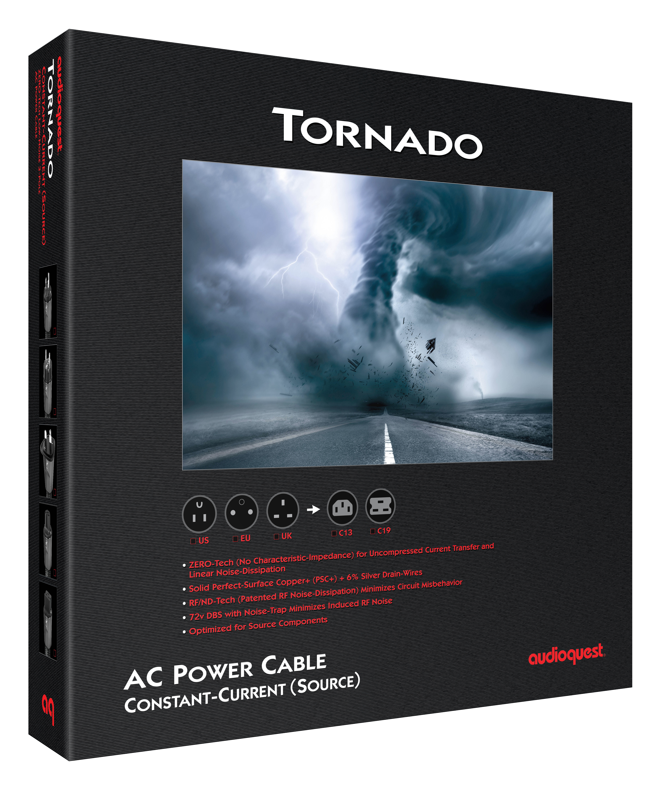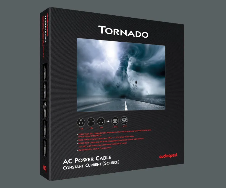 Το AudioQuest Tornado Constant-Current (Source) τοποθετείται στην κορυφή της high-end προς "statement" κατηγορίας καλωδίων τροφοδοσίας, ιδανικό για τις πιο ευαίσθητες και αποκαλυπτικές πηγές ήχου και εικόνας.