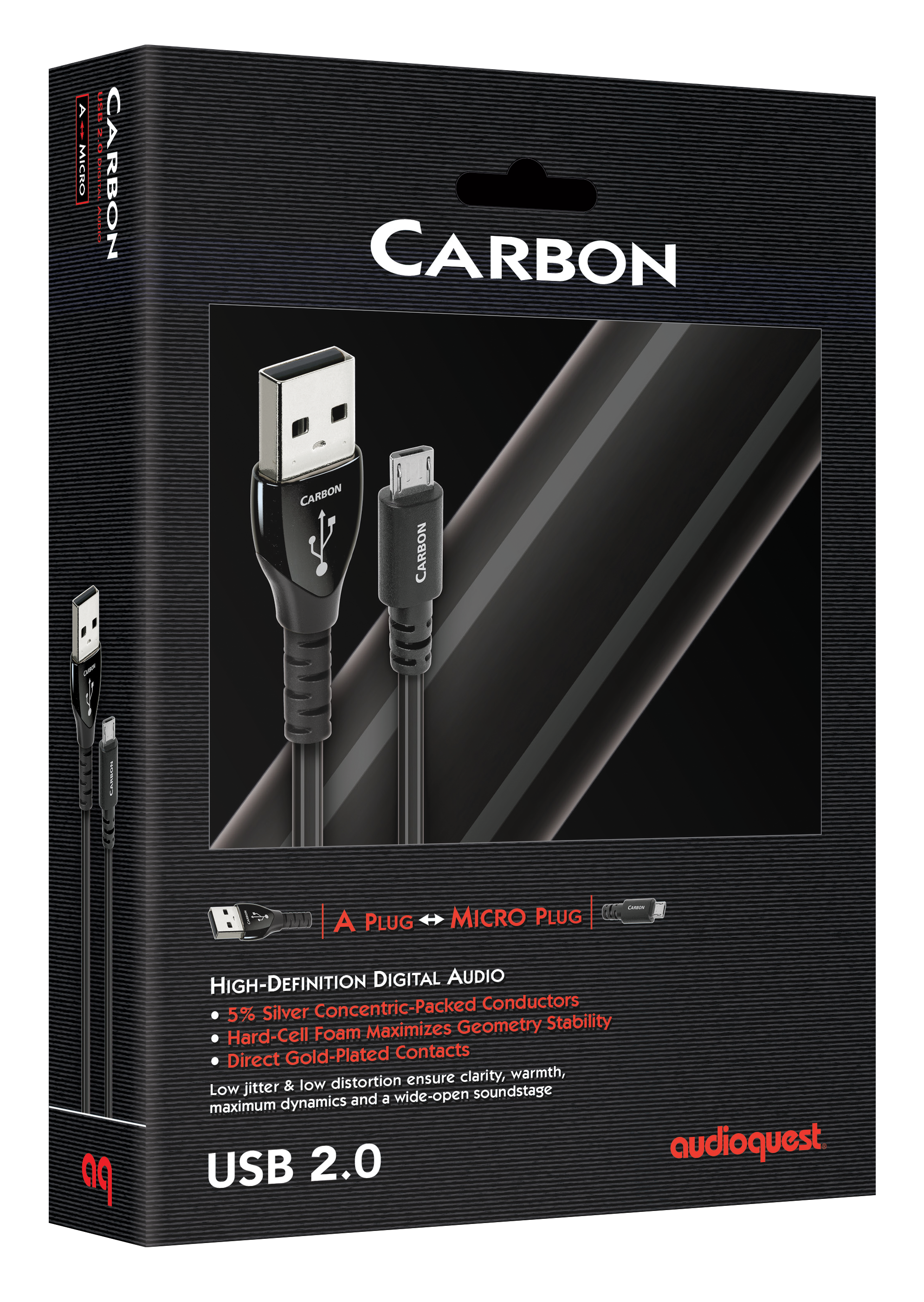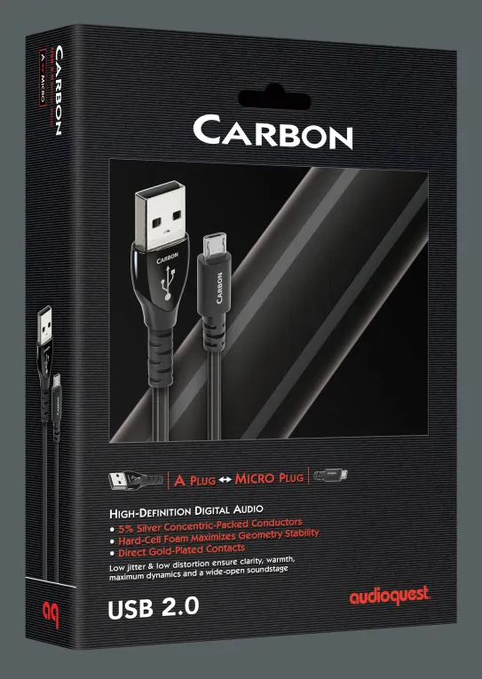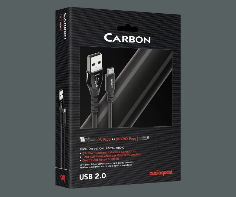 Το AudioQuest Carbon USB, συμπεριλαμβανομένης της έκδοσης Micro-B, είναι ένα από τα πιο αναγνωρισμένα και πολυβραβευμένα καλώδια USB στην αγορά: