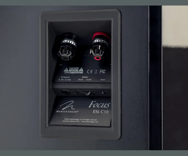 Το MartinLogan Focus ESL C18 είναι ένα κορυφαίο ηλεκτροστατικό ηχείο κεντρικού καναλιού της σειράς Masterpiece, σχεδιασμένο για να προσφέρει ρεαλιστική ηχητική εμπειρία home theater με ευελιξία τοποθέτησης. Διαθέτει ένα ηλεκτροστατικό πάνελ XStat CLS διαστάσεων 19 x 45,7 cm (7,5 x 18 ίντσες), ένα Folded Motion tweeter για λεπτομερείς υψηλές συχνότητες και δύο παθητικούς οδηγούς μπάσου 6,5 ιντσών από αλουμίνιο χαμηλής παραμόρφωσης. Ως πλήρως παθητικό ηχείο, απαιτεί εξωτερικό ενισχυτή, προσφέροντας εξαιρετική απόδοση για διαλόγους και εφέ, ενώ ενσωματώνεται αρμονικά με άλλα ηχεία της σειράς, όπως τα Renaissance ESL 15A, Expression ESL 13A, Impression ESL 11A και Classic ESL 9. Διατίθεται σε ποικιλία φινιρισμάτων, όπως Gloss Black, Walnut, Dark Cherry, Gloss White και premium επιλογές όπως Arctic Silver και Rosso Fuoco, συνδυάζοντας κομψή αισθητική με μηχανική αριστεία.