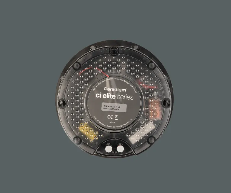 Το Paradigm CI Elite E65-R v2 είναι ένα premium in-ceiling ηχείο της σειράς CI Elite, μέρος της Reference συλλογής της Paradigm, σχεδιασμένο για να προσφέρει καθαρό, ισορροπημένο ήχο με εξαιρετική διαύγεια και δυναμική, ιδανικό για home theater (Dolby Atmos, DTS:X) και κατανεμημένα ηχητικά συστήματα. Διαθέτει 2 οδηγούς σε 2-way coaxial σχεδιασμό, με 1” AL-MAC™ tweeter και 6.5” AL-MAG™ woofer, με σταθερή κατεύθυνση ήχου για ευρεία διασπορά. Κατασκευασμένο στον Καναδά, διατίθεται με λευκή, βαφόμενη micro-perforated γρίλια, προσφέροντας διακριτική αισθητική και υψηλή απόδοση για μικρούς έως μεσαίους χώρους.