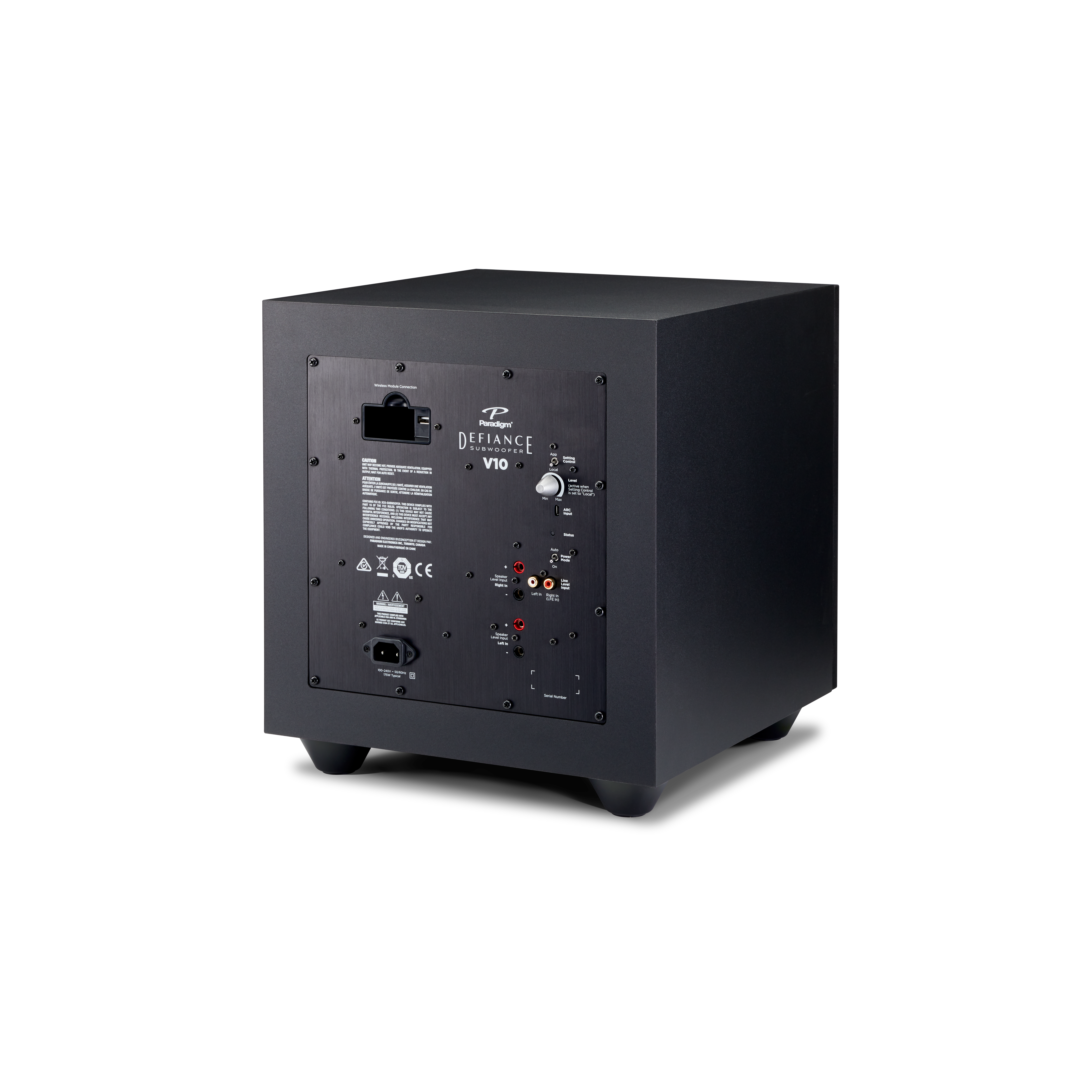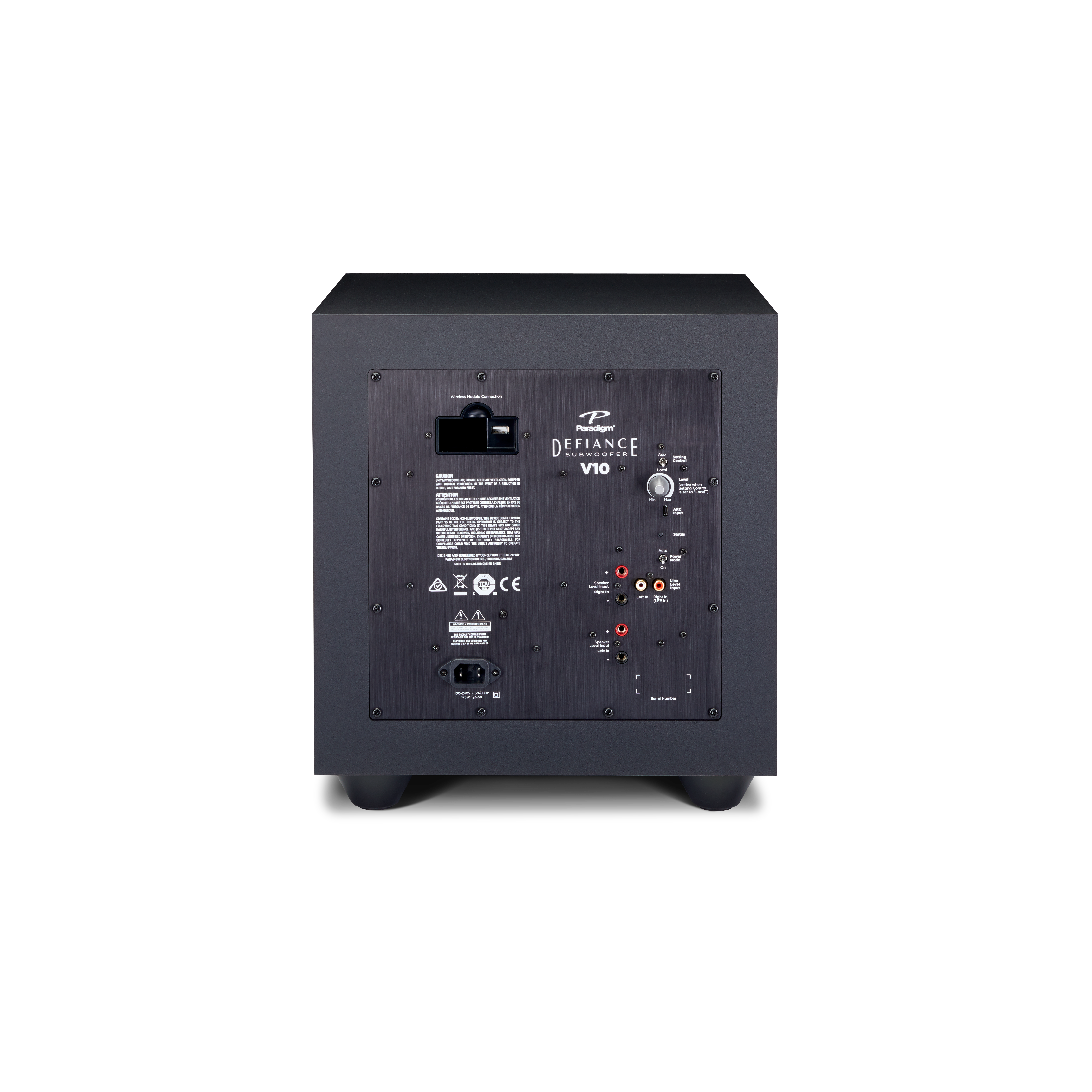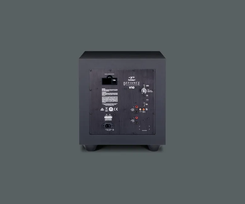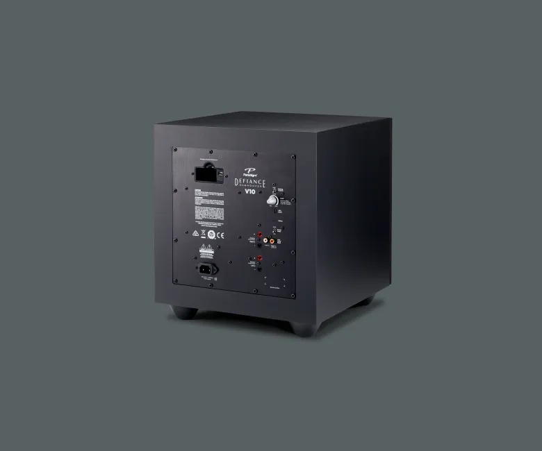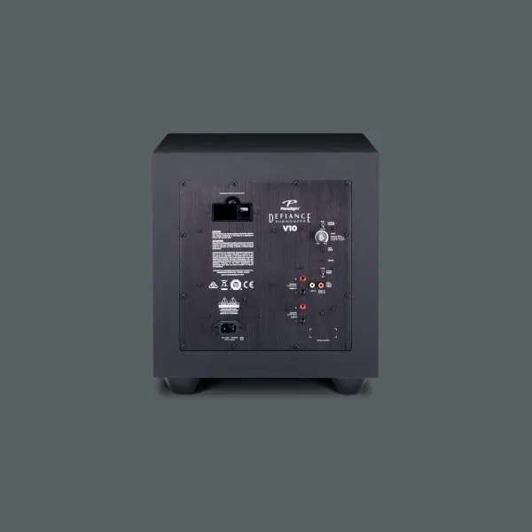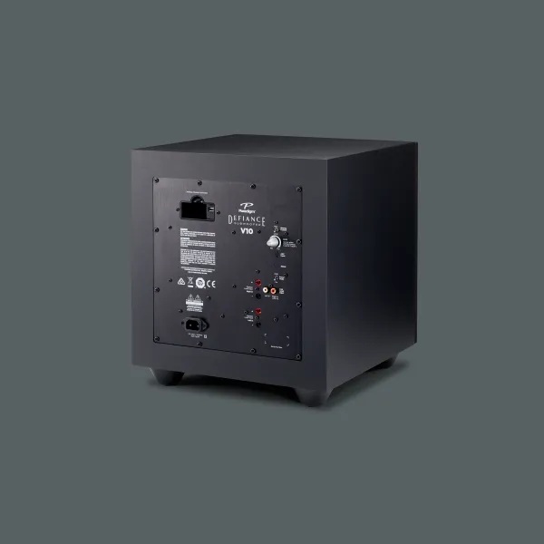 Το Paradigm Defiance V10 είναι ένα subwoofer της σειράς Defiance V, σχεδιασμένο για να προσφέρει ισχυρό, καθαρό μπάσο με compact μέγεθος, ιδανικό για μικρούς έως μεσαίους χώρους, στερεοφωνικά συστήματα ή home theater setups. Διαθέτει έναν οδηγό 10 ιντσών (254 mm) από carbon-loaded polypropylene, ενισχυτή Class-D 120W RMS (250W Dynamic Peak), και bass reflex σχεδιασμό με down-firing port για ευελιξία τοποθέτησης. Υποστηρίζει Anthem Room Correction (ARC®) μέσω USB και μικροφώνου (δεν περιλαμβάνεται) και wireless συνδεσιμότητα με προαιρετικό Defiance WT module. Κατασκευασμένο στον Καναδά, διατίθεται σε Satin Black φινίρισμα, συνδυάζοντας απλή αισθητική με στιβαρή κατασκευή.