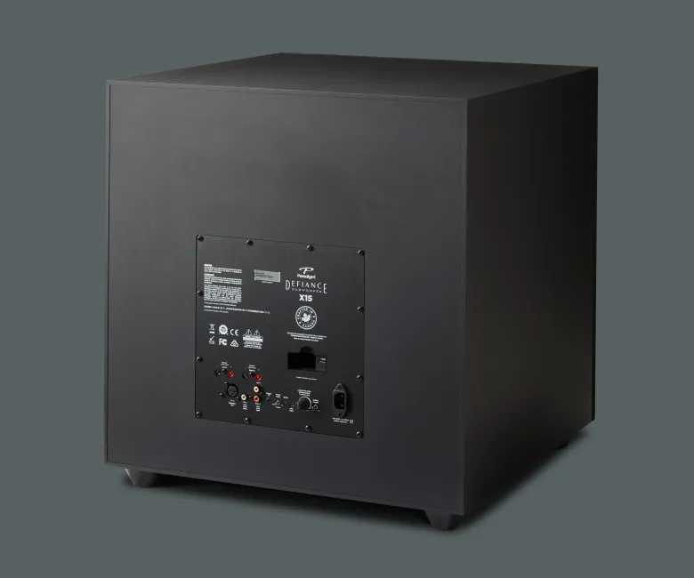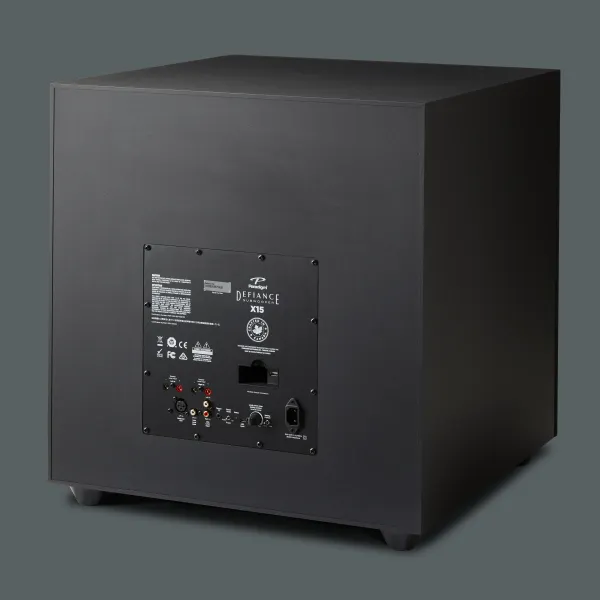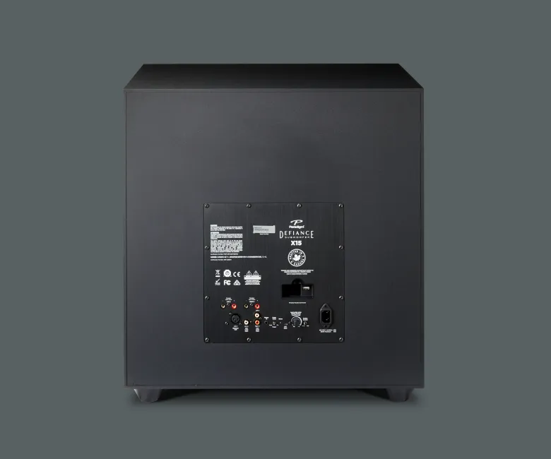 Το Paradigm Defiance X15 είναι το κορυφαίο subwoofer της σειράς Defiance X, σχεδιασμένο για να προσφέρει ασυμβίβαστο, βαθύ και ισχυρό μπάσο, ιδανικό για μεγάλους χώρους, home theater και hi-fi συστήματα. Διαθέτει έναν οδηγό 15 ιντσών (381 mm) με Active Ridge Technology (ART™) και carbon-loaded polypropylene cone, ενισχυτή Class-D 900W RMS (1,800W Dynamic Peak), και bass reflex σχεδιασμό με down-firing high-velocity low-turbulence port. Υποστηρίζει Anthem Room Correction (ARC®) με περιλαμβανόμενο μικρόφωνο, app control μέσω Bluetooth, και προαιρετικό Defiance WT wireless module. Κατασκευασμένο στον Καναδά, διατίθεται σε Satin Black φινίρισμα, συνδυάζοντας στιβαρή κατασκευή με μοντέρνα αισθητική.