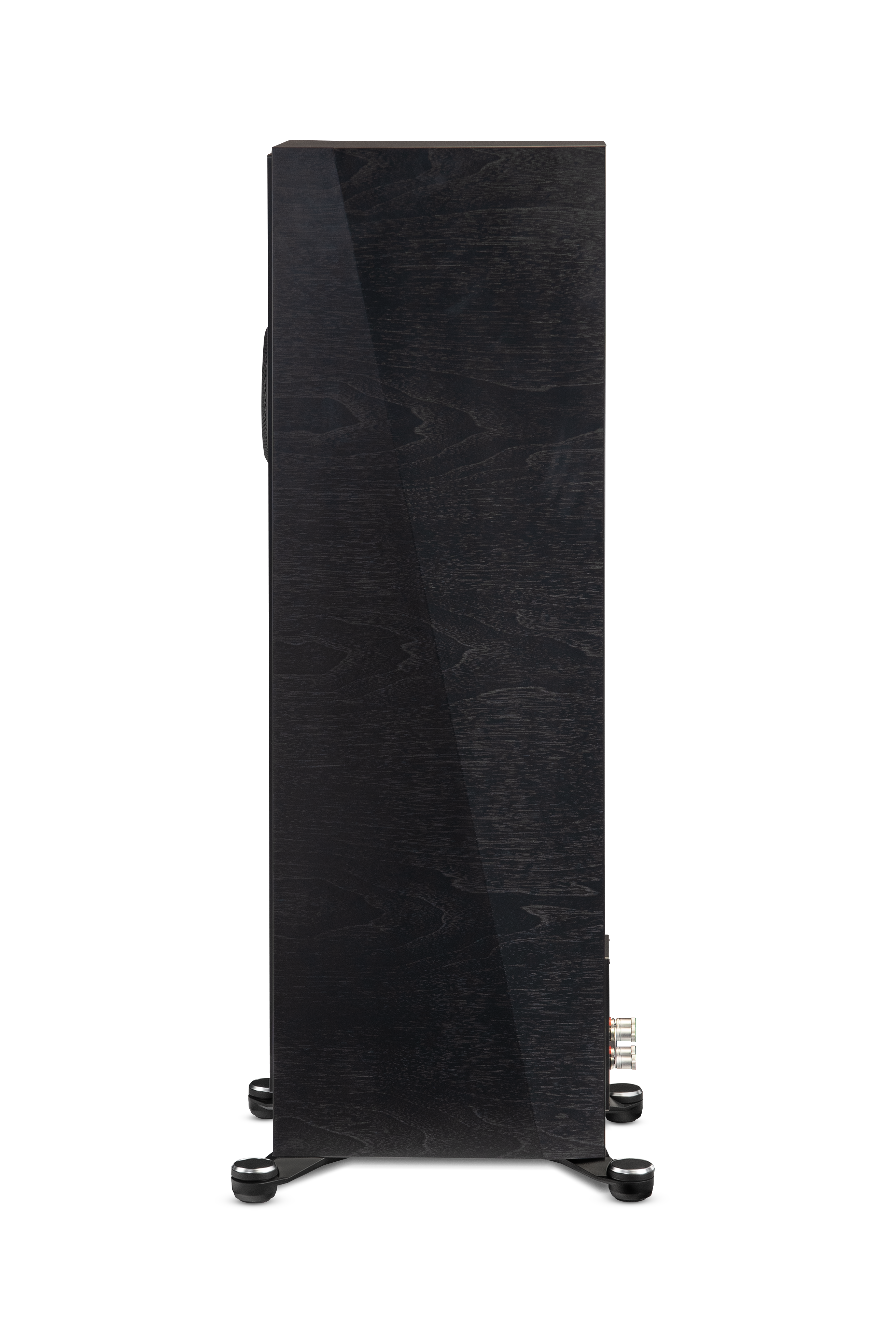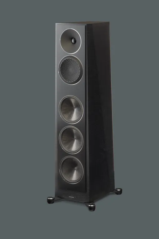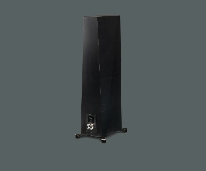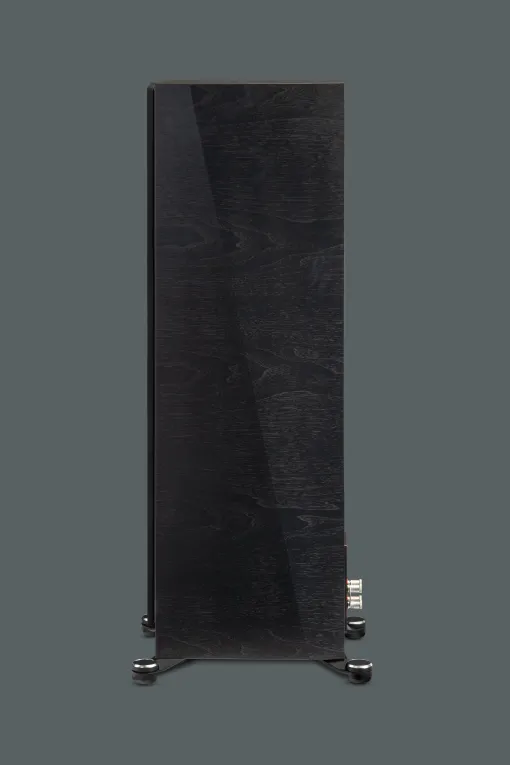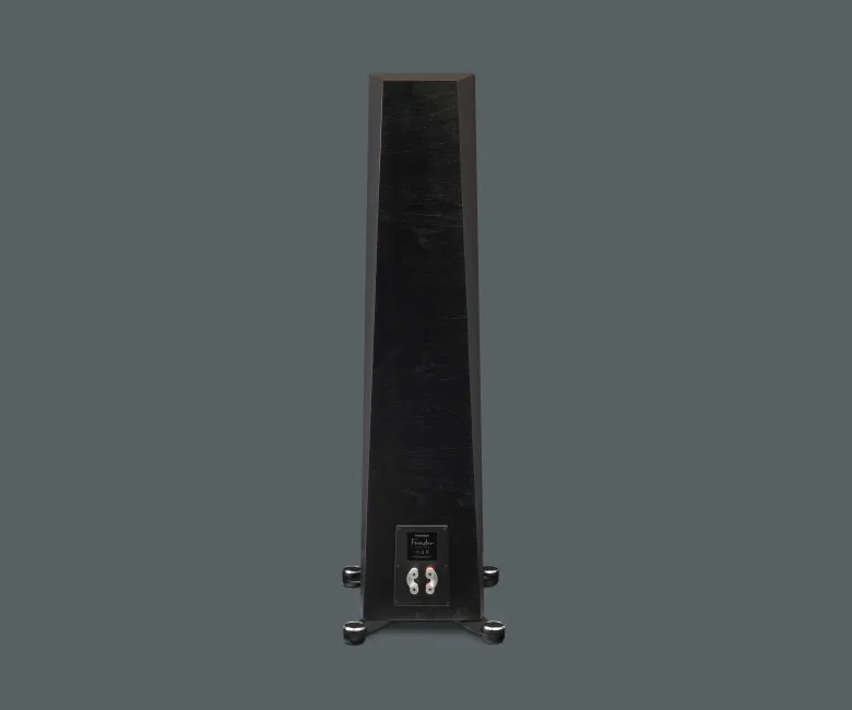 • Σχεδιασμός Περιβλήματος: Το περίβλημα, από υψηλής πυκνότητας υλικά, έχει καμπύλο, μη παραλληλόγραμμο σχήμα για μείωση στάσιμων κυμάτων. Διαστάσεις 106,5 x 26,1 x 38,2 cm, βάρος 31,7 kg. Περιλαμβάνει μαγνητική γρίλια και διπλούς ακροδέκτες για bi-wiring/bi-amping.