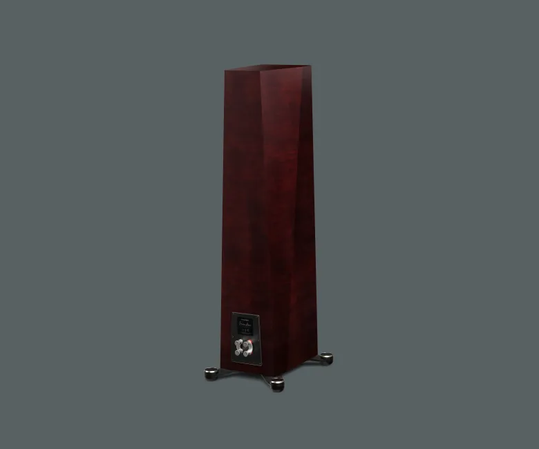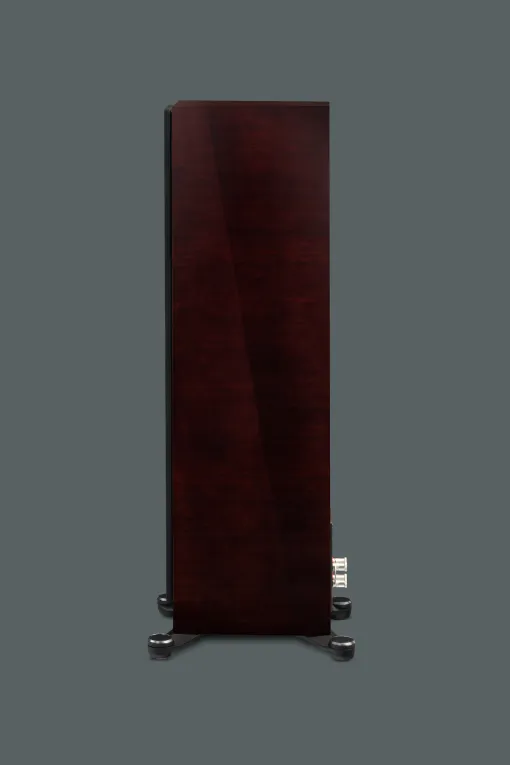 • Σχεδιασμός Περιβλήματος: Το περίβλημα, από υψηλής πυκνότητας υλικά, έχει καμπύλο, μη παραλληλόγραμμο σχήμα για μείωση standing waves. Διαστάσεις 96,2 x 19,7 x 35,5 cm, βάρος 23,6 kg. Περιλαμβάνει μαγνητική γρίλια και διπλούς ακροδέκτες για bi-wiring/bi-amping.