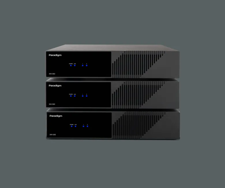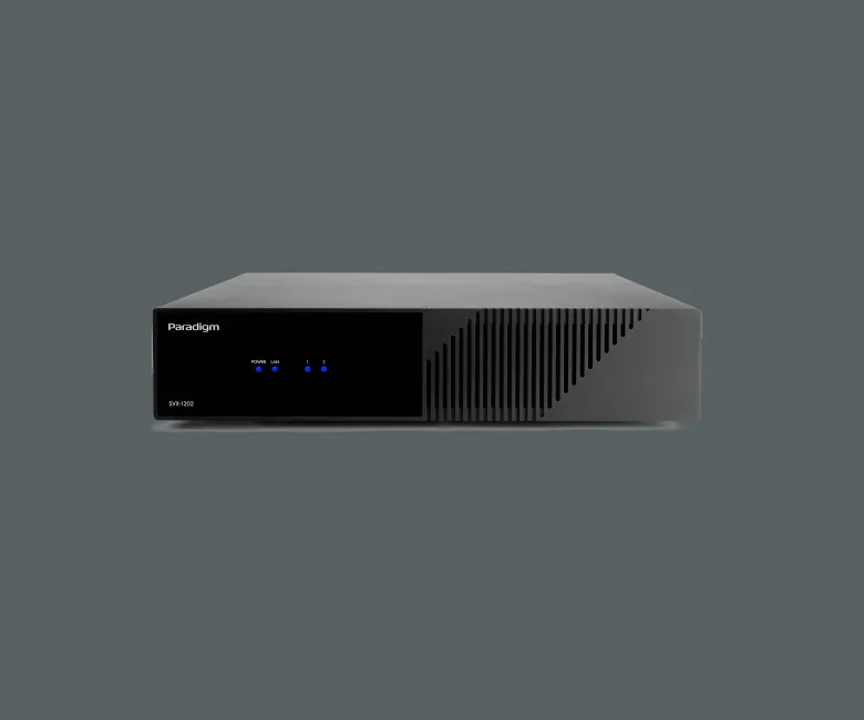 Το Paradigm SVX-1202 είναι ένας υψηλής απόδοσης, 2-καναλιού streaming ενισχυτής, σχεδιασμένος για custom εγκαταστάσεις, όπως home theater, κατανεμημένα ηχοσυστήματα και εξωτερικούς χώρους. Ιδανικός για τροφοδοσία υψηλής ισχύος subwoofers (π.χ. Paradigm DCS-208 Series) και ηχείων της σειράς Garden Oasis, προσφέρει ευελιξία, ισχύ και προηγμένη τεχνολογία. Κατασκευασμένο στον Καναδά, διαθέτει συμπαγή σχεδιασμό (3U ύψος), προηγμένο σύστημα ψύξης και δυνατότητες streaming, καθιστώντας το ακρογωνιαίο λίθο για επαγγελματικές και οικιακές εφαρμογές.